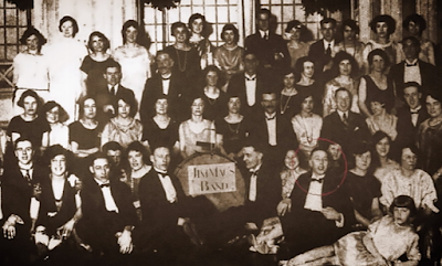 banda de jazz chamada de “Jim Mac Jazz Band”, e mostra a foto de um grupo de